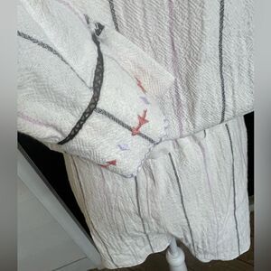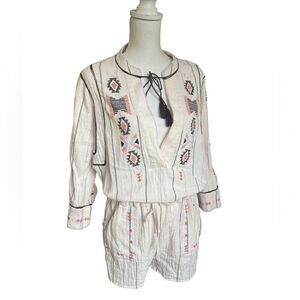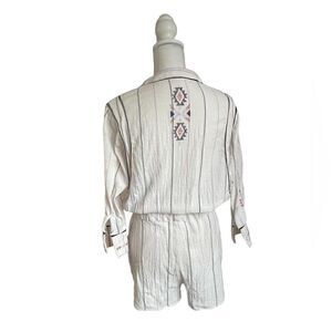 Free People Baja Boho Aztec Embroidered Crean V Neck Romper Size S/P