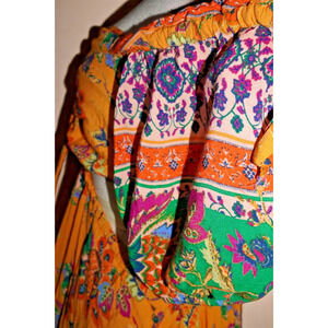 Turn heads in the Bali Citrus Skies Jumpsuit by Free People — a vibrant, boho-inspired statement piece with a retro soul. This jumpsuit features a ruched sweetheart neckline with adjustable cinch ties, playful side cutouts for added shape, and wide-leg pants for an effortless silhouette. Its bold citrus-orange floral print and puff sleeves can be worn on or off the shoulder, making it the perfect look for summer festivals, beach getaways, or dreamy sunset dinners.