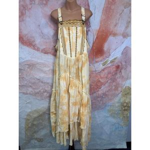 Features: Classic bib-and-brace bodice, adjustable straps, embroidered detailing at the bodice, classic tie-dye design
