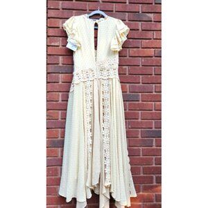 Free People Bali Keely Embroidered Dots Lace Chiffon BoHo Maxi Dress Sz XS - NWT