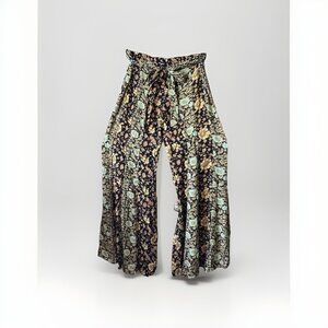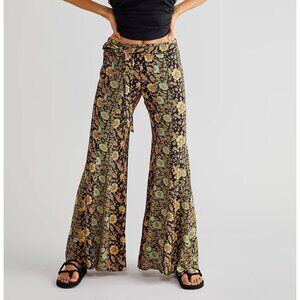 Free People Bali Sultry Boho Flare Floral Festival Wide Leg Bell Bottom Pants S
