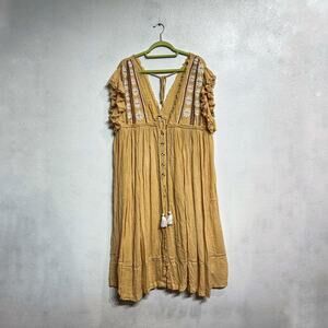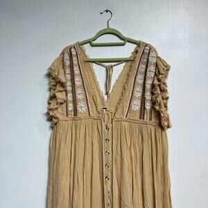 Free People Bali Will Wait For You Embroidered Midi Dress Sz L