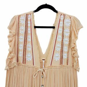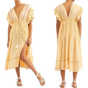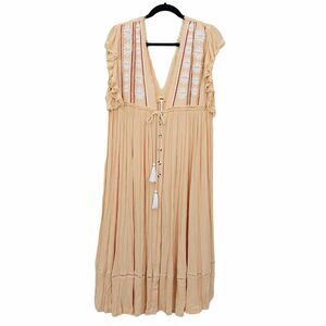Free People Bali Will Wait For You Midi Dress Medium Cream Boho Embroidered