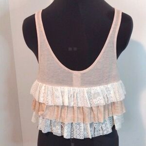 Free People Ballet Crop top with Lace Ruffle Trip NWT