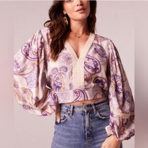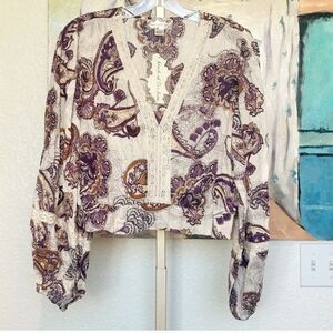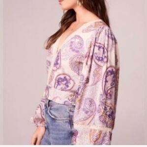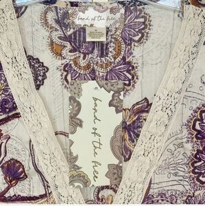 Free People / Band of the Free Mirabelle Purple Paisley Lace Crop Top Sz M NWT