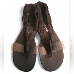 Free People sandals, Barcelona wrap sandals, black suede sandals, ankle wrap sandals, boho sandals, festival sandals, summer sandals, women's size 8 sandals, strappy sandals, lace-up sandals, Free People shoes, minimalist sandals, vacation sandals, bohemian shoes