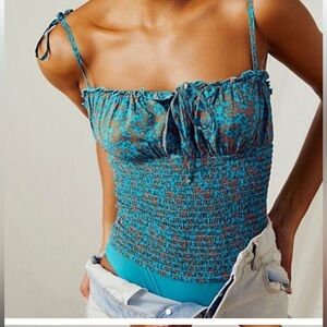 Free People Bardot Bodysuit in ditsy Floral print Red/Blue Size XS