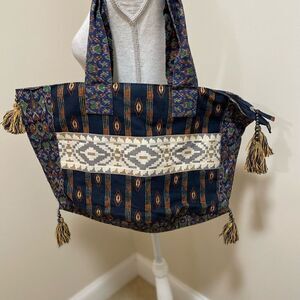 Free People Basel Tassel Patchwork Tote In Southwestern Pattern NWOT $98