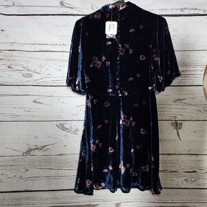Free People Be My Baby Velvet Blue Dress 4/6 NWT