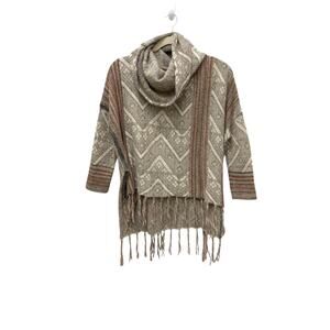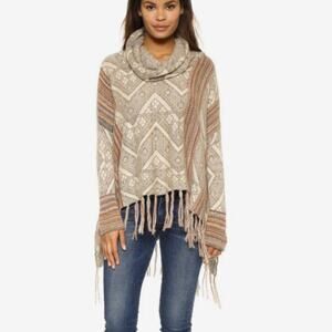 Free People Be The One Fringe Cowlneck Poncho Sweater Wool Alpaca Size Medium