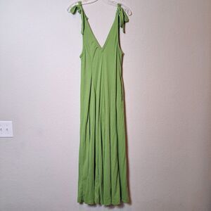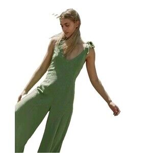 Free People Beach Alice One-Piece Jumpsuit XS Green Tie Shoulders Oversized Flow