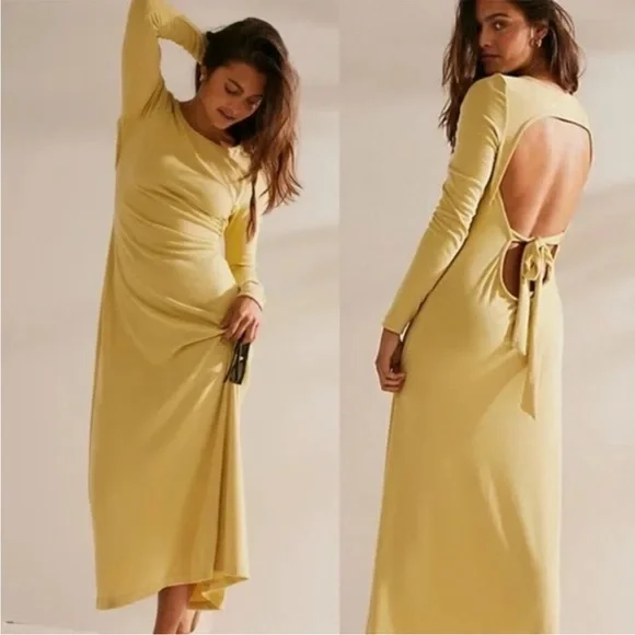 Free People Beach Aubre Yellow Dress Maxi Small Tie Back