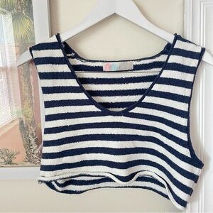 Free People Beach Bailey 2 Piece Crop Top & Skirt Set in Navy White Striped