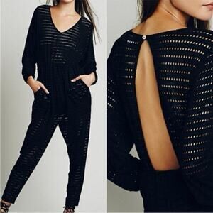 Free People Beach Black Crochet Cover Up Jumpsuit Womens Size S