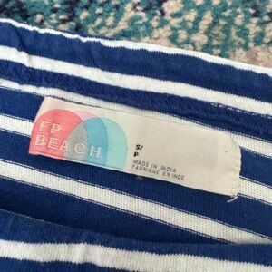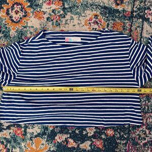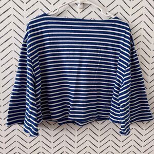 Free People Beach Blue Striped Cropped Sweatshirt Bell Sleeve Size Small