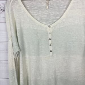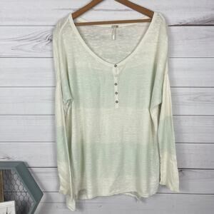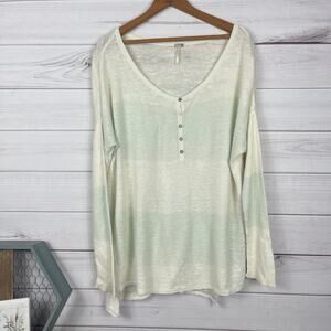 Free People Beach Boho Beach Color Block Cream Green Stripe Knit Top Women's Xs - Oversized Fit! Linen Blend