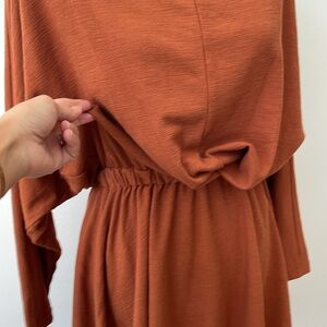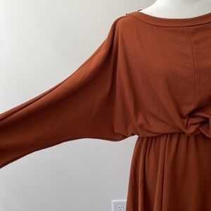 Free People Beach Brown Long Sleeve Dress Dolman Elastic Waist Size XS Fall