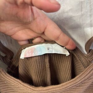 Free People Beach Brown Otter Brun Fitted Summer Tie Camisole Dress Medium NWT