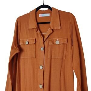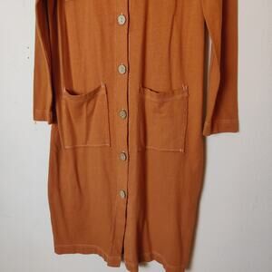 Free People Beach Button Front Long Line Cotton Duster Cardigan Small Orange
