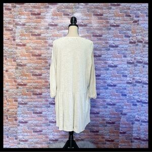 Free People Beach Button Up Tunic Dress in a size Small. Has a rounded neckline with nine buttons that go down to the drop waist. Banded cuffs. Slight high-low hem. Measures approx. 26" armpit to armpit, 36" in length in the front, 38" in length in the back. 52% Linen, 48% Cotton. In excellent condition.