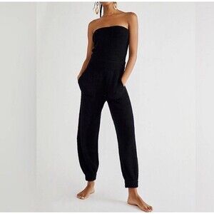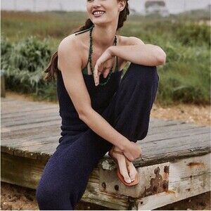 Free People Beach Claire One Piece Medium Navy Blue Marin Strapless Jumpsuit NWT