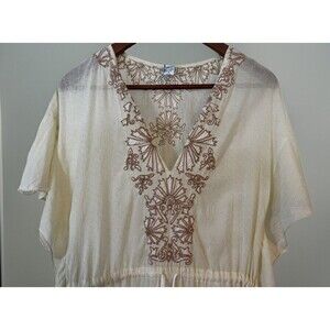 The Free People Beach Cover in light yellow, size 2, is a stylish and comfortable blouse perfect for casual occasions. With a solid pattern, short sleeves, V-neckline, and lace accents, this top is a great choice for a boho or beachy look. Made from a blend of rayon and cotton, it offers a regular fit and is ideal for women who love the Free People brand and want to add a touch of bohemian style to their wardrobe.