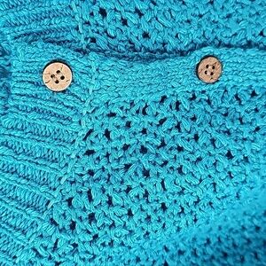NWOT Cropped Shrug. Loose Knit Turquoise Color. Brown Wood-toned Buttons. May Show Minor Signs of Shelfwear. Cozy Shoulder Cover-up. Refresh & Brighten Up Any Outfit!!