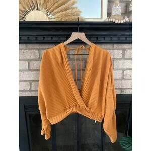 Free People Beach Cropped Wrap Sweater Large Yellow