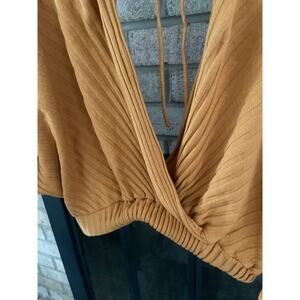 Free People Beach Delray Wrap Sweater Large Mustard Yellow Ribbed Crop Open Back