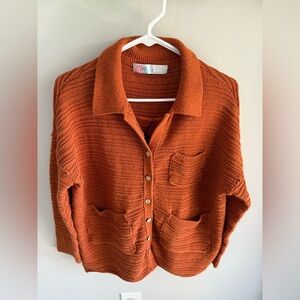Free People Beach Day Dreaming Button-Up Cardigan - Burnt Orange - Extra Small