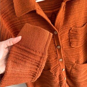 Free People Beach Day Dreaming Button-Up Cardigan Sweater - Burnt Orange - Size Extra Small XS