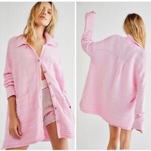 Free People Beach Day Dreaming Button up Cardigan pink cotton oversized medium
