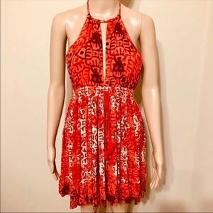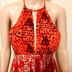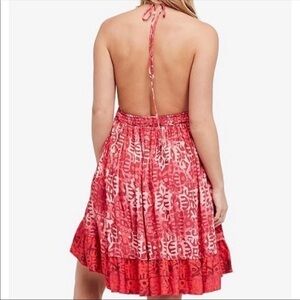 Free People's alluring halter dress mixes casual styling with a sultry open-back design. This piece is finished with cinchable tassle ties at the waist.