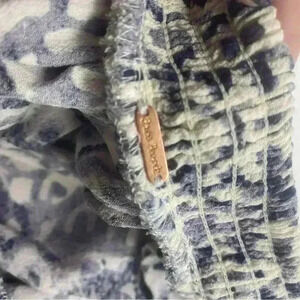 Free People flowy blue and ivory white halter beach day dress with open back. Boho style. Long triangle top halter with keyhole slit in front chest Elastic waist