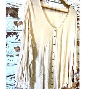 Free People Beach Flowy Linen Blend Lightweight Oversized Button Dress w Pockets