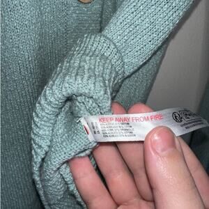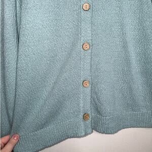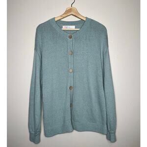 Free People Beach “Ameena” cardigan in Blue Haze. This cozy oversized sweater features a soft cotton-acrylic blend, button front closure, and relaxed drop shoulders for an effortlessly slouchy silhouette. Perfect for layering year-round, it’s the ideal blend of comfort and casual chic.