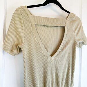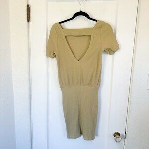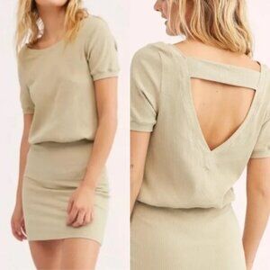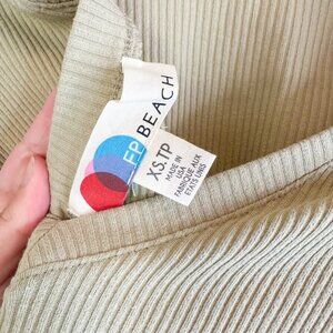 Free People Beach | Happy Hour Ribbed Stretch Mini Dress in Tan / Olive XSmall