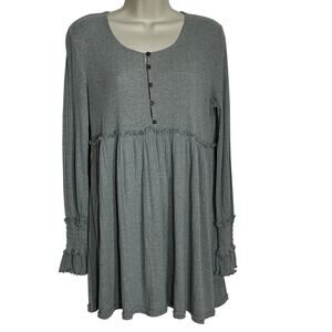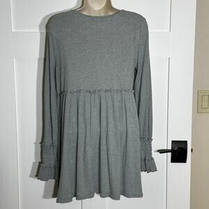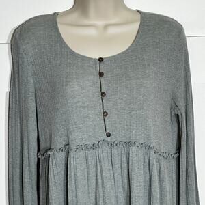 Free People Beach High Tides Mini Dress Baby Doll Boho Long Sleeve Sage Size XS