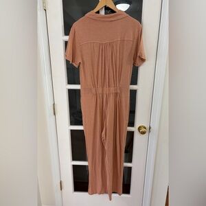 Free People Beach Jumpsuit - size M - NWT - short sleeves - side pockets - half way front buttons - according to the tag is pink rose color