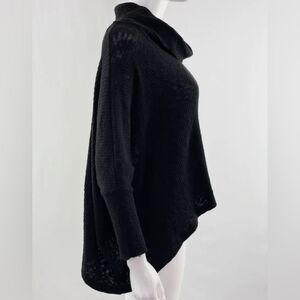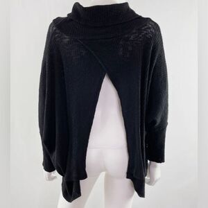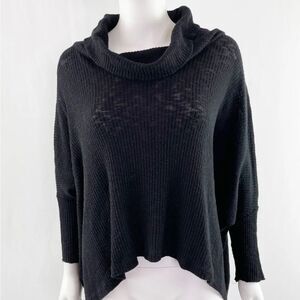 Free People FP Beach black cowl neck long sleeve ribbed knit sweater top with open back and raw unfinished hem. Size Small. Cotton blend. Great condition. Very thin as you can see in the pictures.