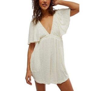 Free People Beach La La Flutter Sleeve Romper in Wet Plaster Mint Green size M