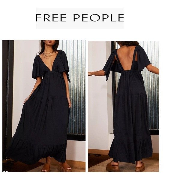 Free People Beach LaLa Black Backless Maxi Dress Black L
