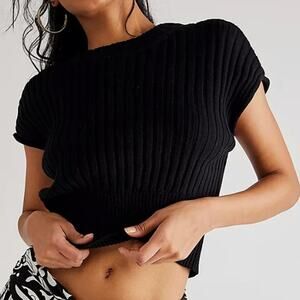 Free People Beach Layton Sweater Pullover Cropped Cotton Rib Knit Scoop Black