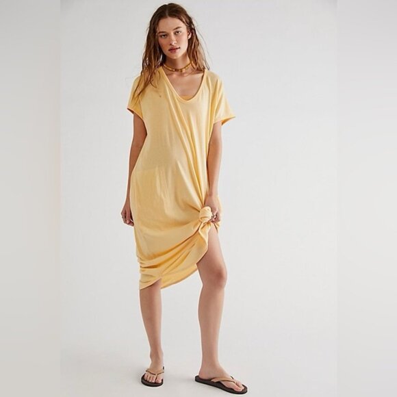 Shapeless oversized midi dress from our FP Beach collection * V-neckline * Dolman style short sleeves * Hip pockets * Rounded hem