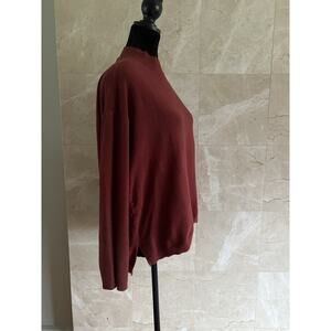 Free People Beach lounge set in a warm rust tone. Size Small. Includes wide leg cropped pants and a matching mock neck long-sleeve sweater. Soft knit blend with relaxed fit and minimalist silhouette. Perfect for cozy weekends, airport chic, or layering into your capsule wardrobe.