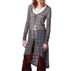 Free People Beach Love Song Crochet High Low Duster Cardigan Boho Lagenlook Sz S