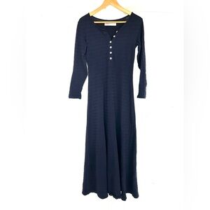 This button-front long sleeve dress from our free-est collection is featured in a horizontal ribbed knit fabrication.
