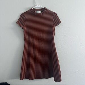 Free People Beach On The Line Mock Neck Striped Mini Dress Short Sleeves Small