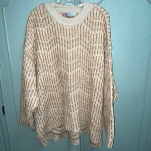 Free People Beach Oversized Grandpa Sweater XL Womens Tan Blush Pullover Crew