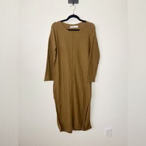 Free People Beach Oversized Slub Knit Brown Side Slit Maxi Dress Size XS